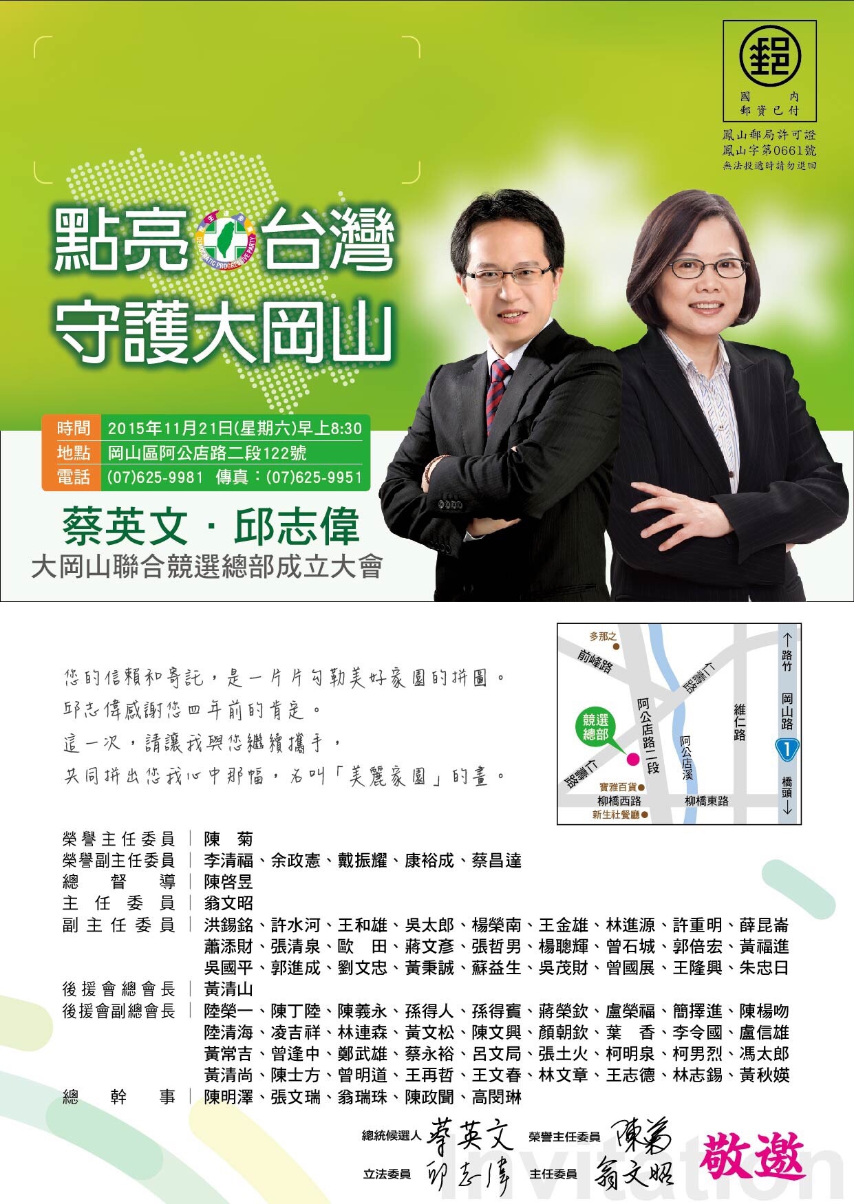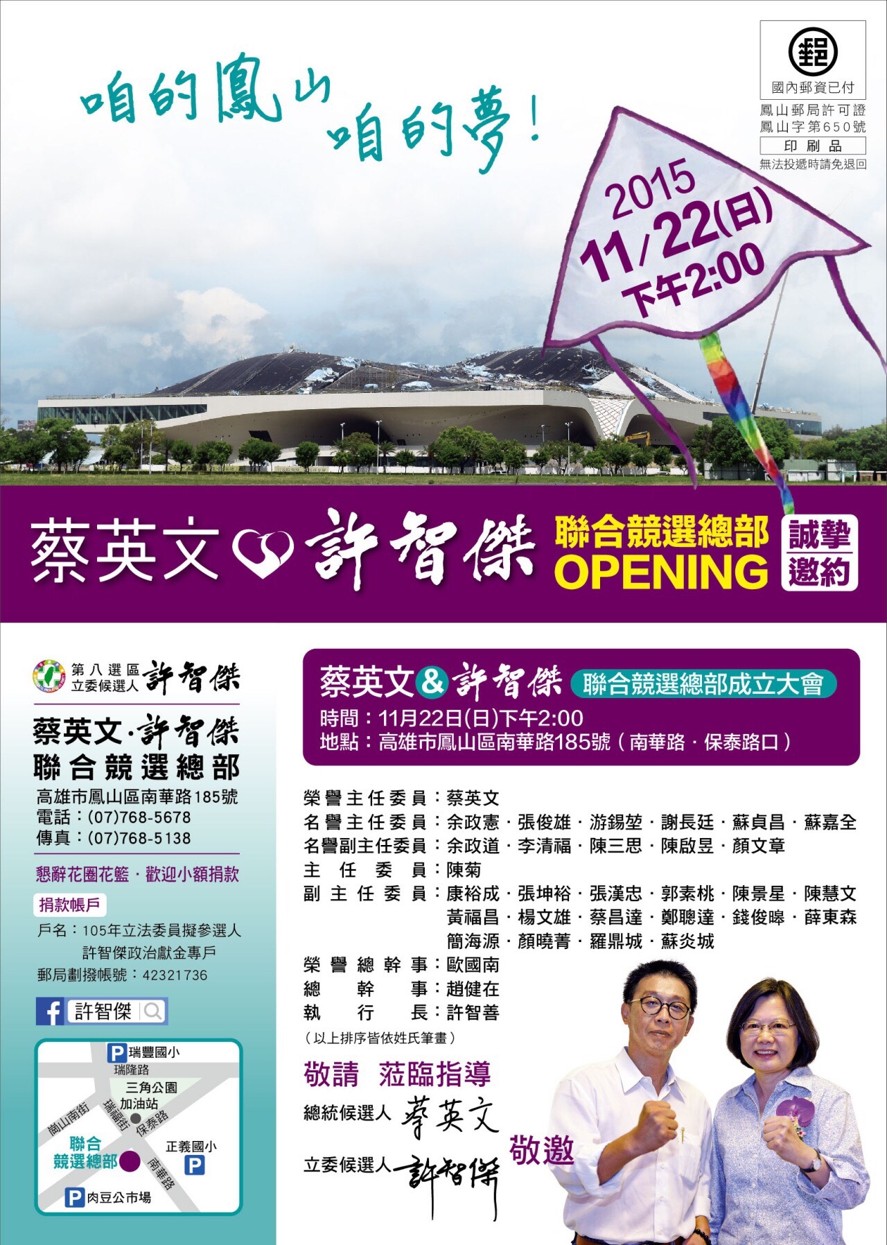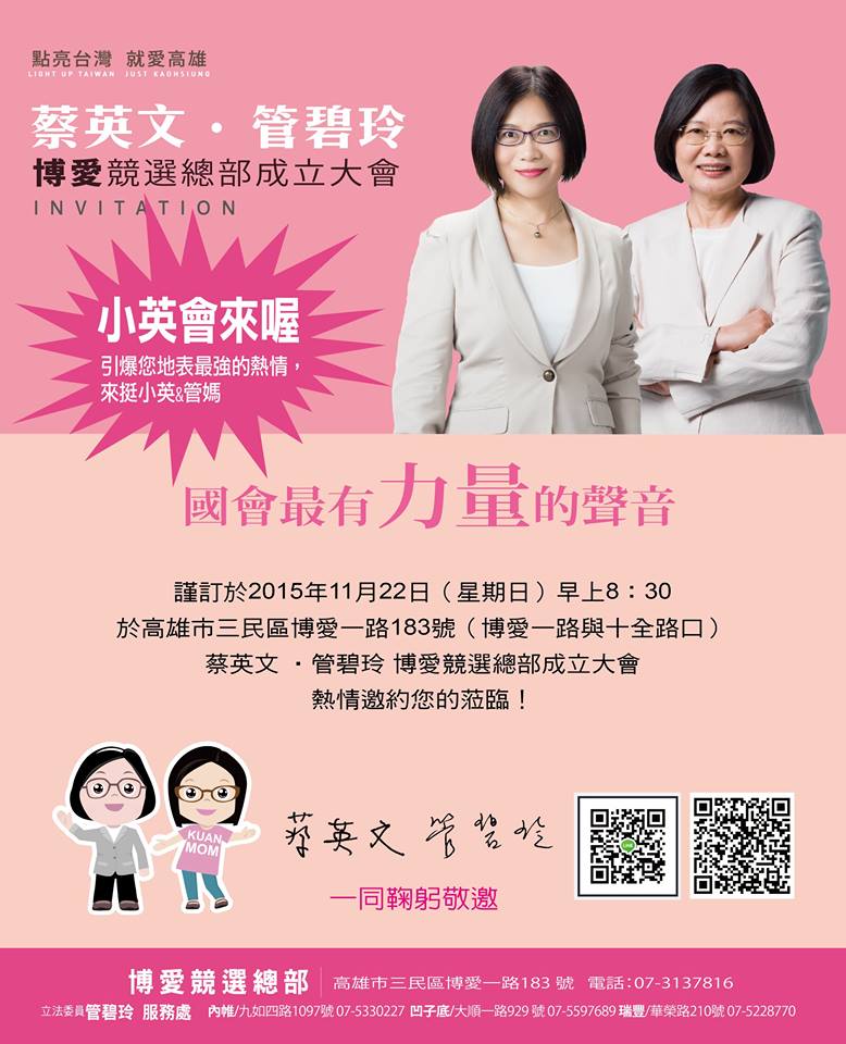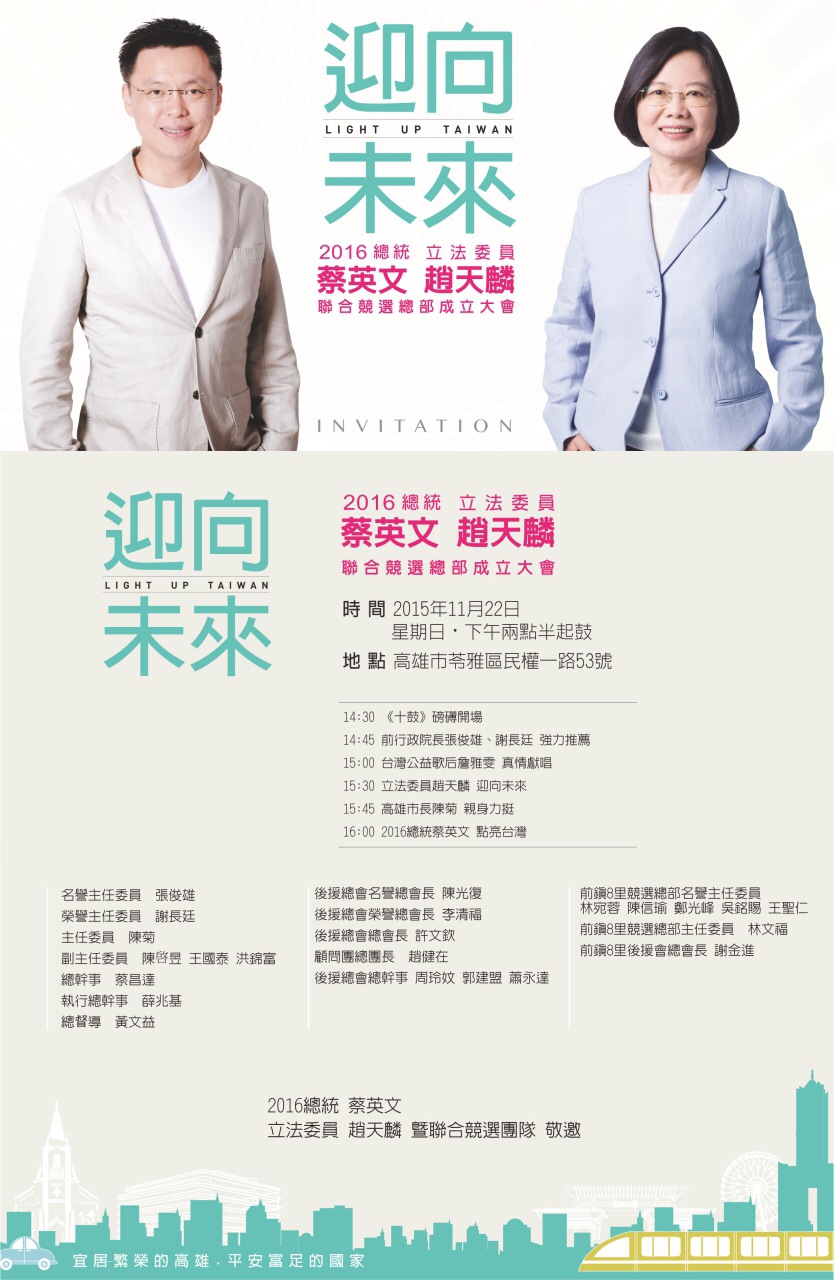 11/21.11/22立委提名候選人暨總統候選人蔡英文聯合競選總部成立訊息